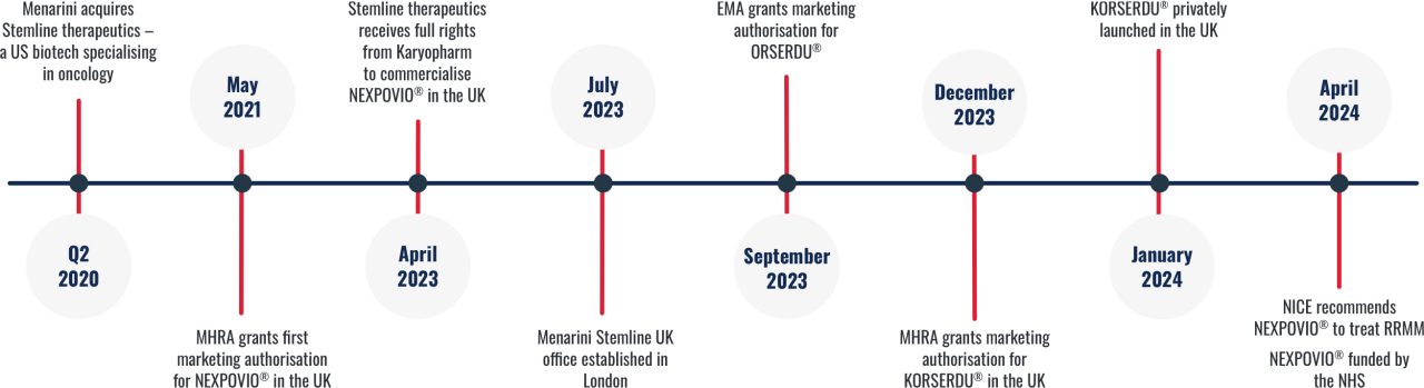 Şirketleri Avrupa’dan Asya’ya, Afrika’dan Orta Doğu ve Orta Amerika’ya uzanan Menarini Group, son olarak NASDAQ listesinde yer alan biyofarmasötik şirketi Stemline Therapeutics’i de satın almasıyla birlikte onkoloji ve hematoloji tedavi alanlarina da giriş yapmıştır.